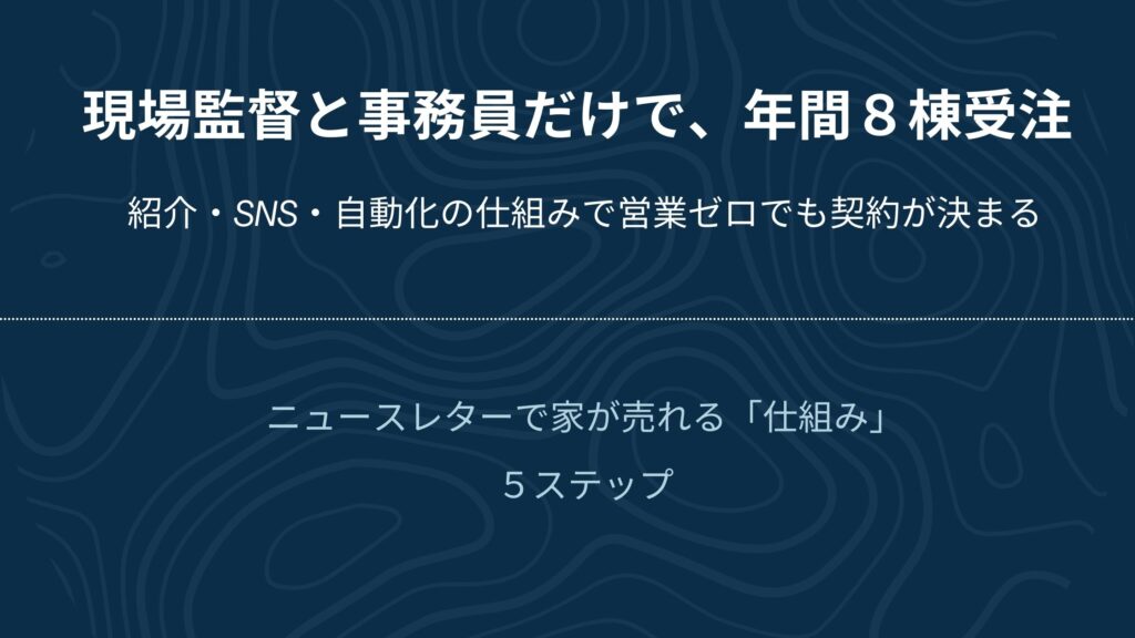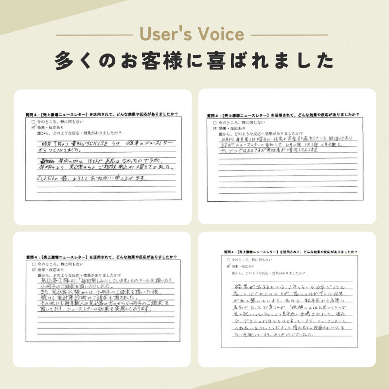 こうした方々のおかげで、ニュースレターを活用した「家が売れる仕組みづくり」は、広告に頼らず、紹介やファン化を中心としたローコスト・高反応型マーケティングとして非常に有効だということが証明できたのです。