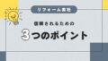 - 表面的な要望だけを聞いて「言われた通りにしました」というリフォーム会社と