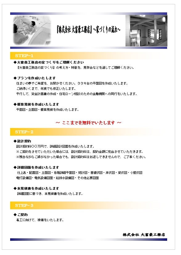 ここで説明しておくことで、「子どもの小学校入学に間に合わせたい」など、完成期限があるお客様は、自分で相談開始の予定が立てられます。